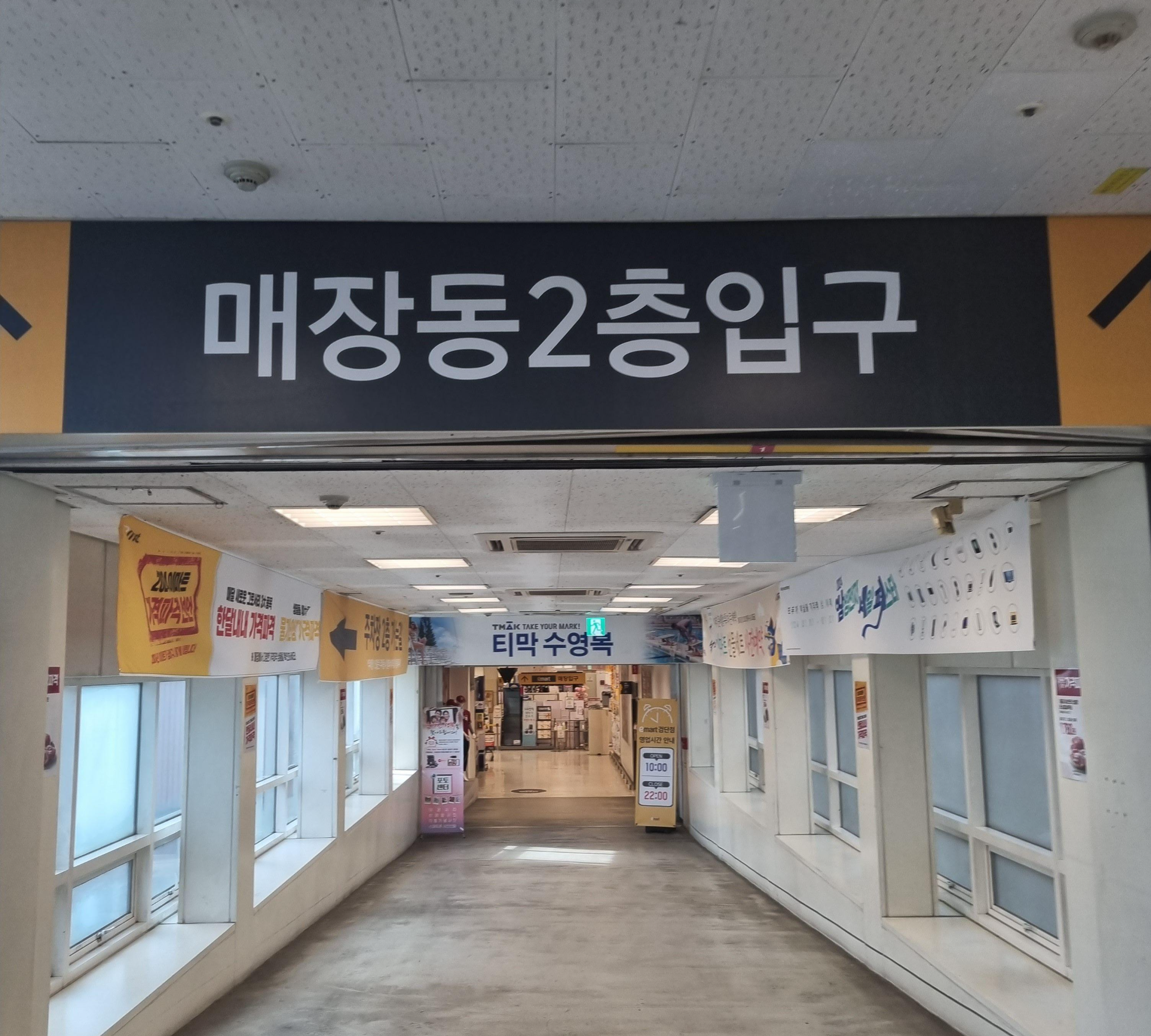 이마트 검단점은 주차장이랑 매장 건물이 다르기 때문에 2층에 주차한 후 매장동과 연결되는 다리를 따라서 건너가야 합니다. 공병을 30병 넘게 모아서 가져가는거라 주차장에서 아예 카트를 끌고 이동했습니다.