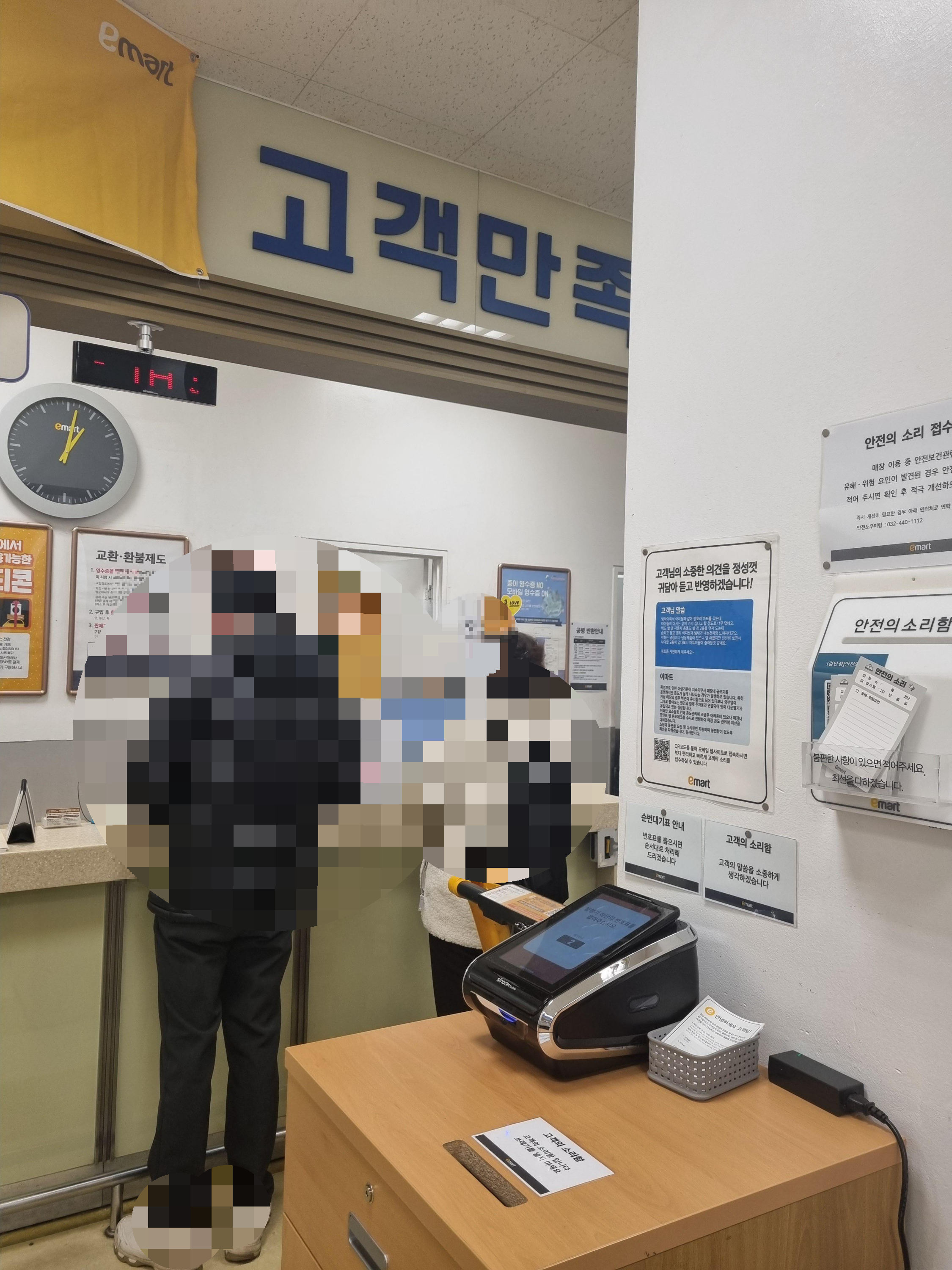 이마트 부천점에서는 공병 회수 기계가 있어서 기계가 있는 주차장 구역에서 공병을 반환했었는데 이마트 검단점은 기계 없이 안내데스크에서 번호표를 뽑고 공병을 반환하는 시스템이었습니다.