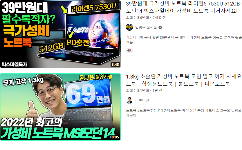인강용이나 블로그용 가성비 노트북 검색하면 진짜 너무 다양하게 나오더라구요. 저는 IT 기기나 용어도 잘모르고 필요한 기능도 별로 없어서 유튜브 보면서 최종적으로 3가지 모델 중에서 골랐습니다.