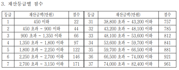 재산에 따른 보험료 부과점수